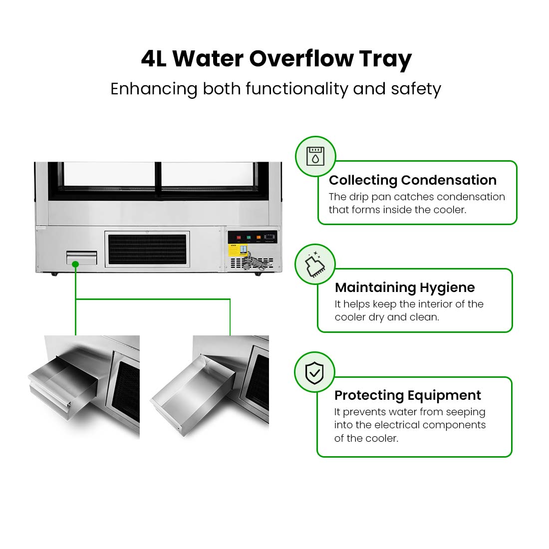 • Tempered ITO heated glass: Prevents fogging for clear visibility