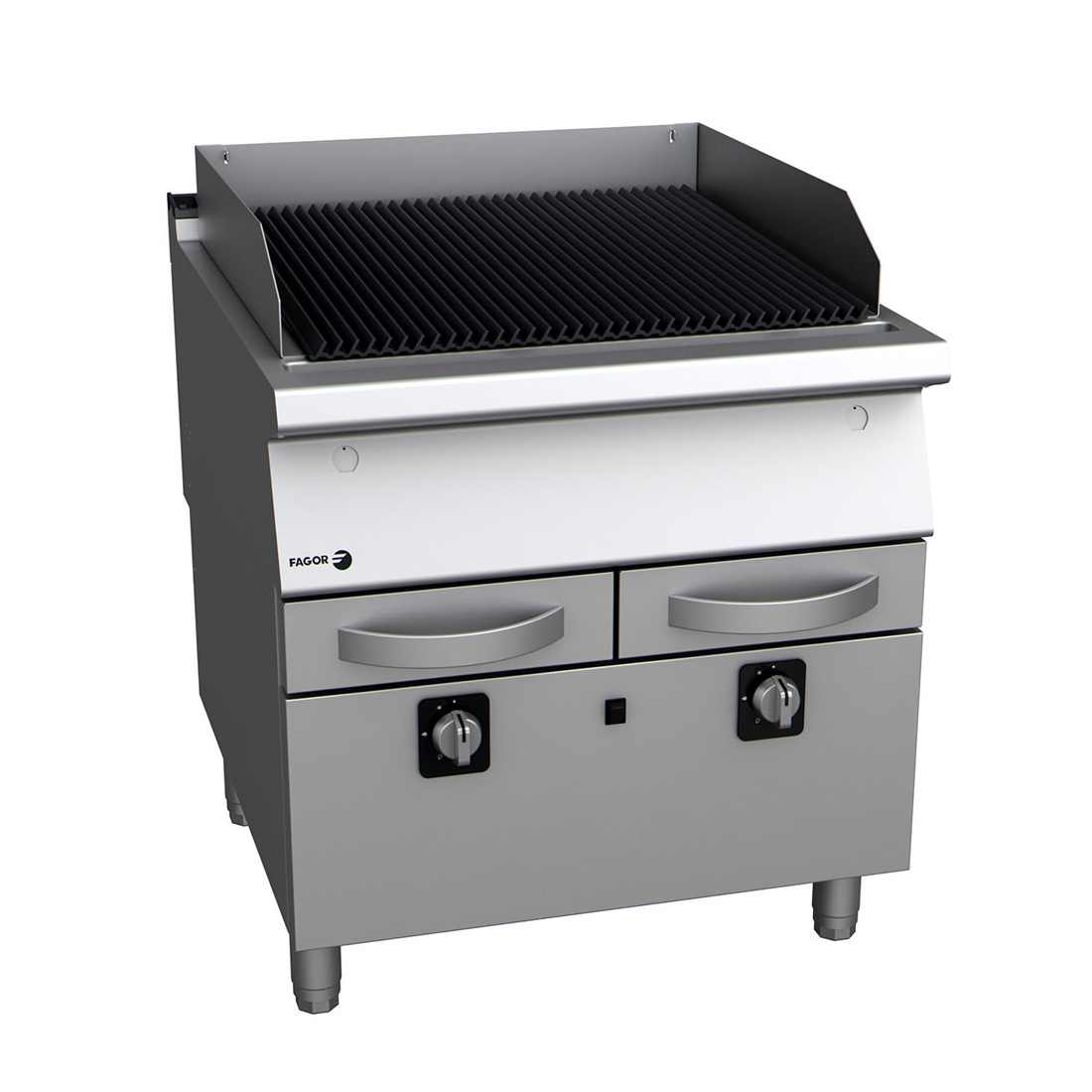 • Cast Iron grill, dismountable without needing tools, in 170 mm wide sections.