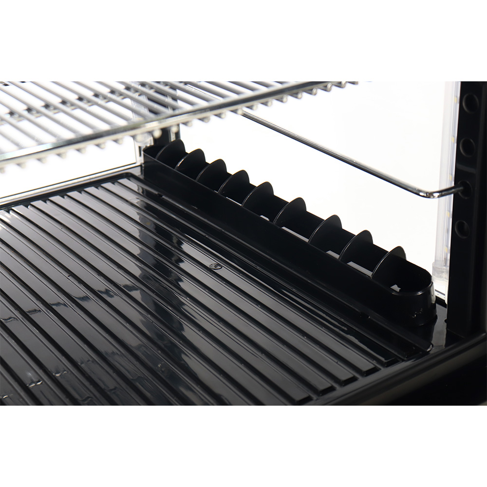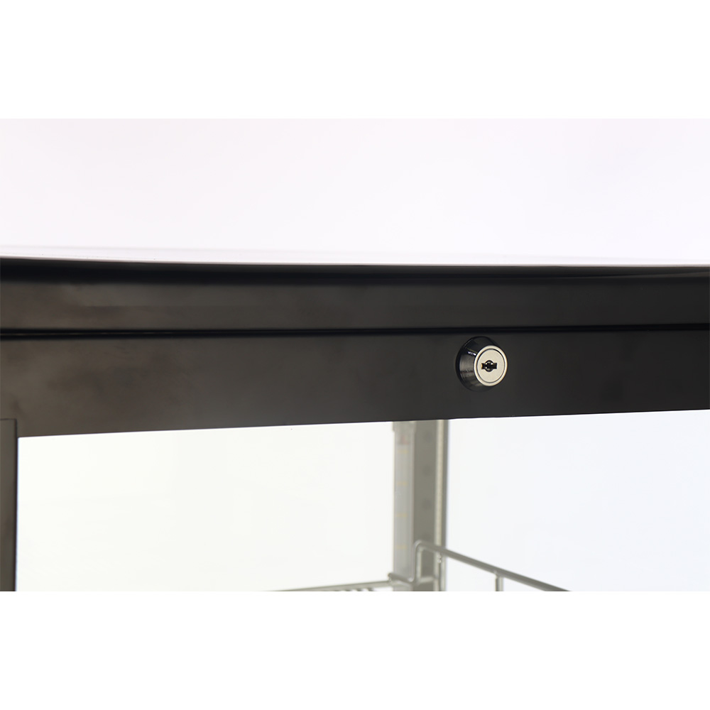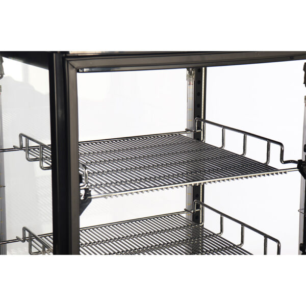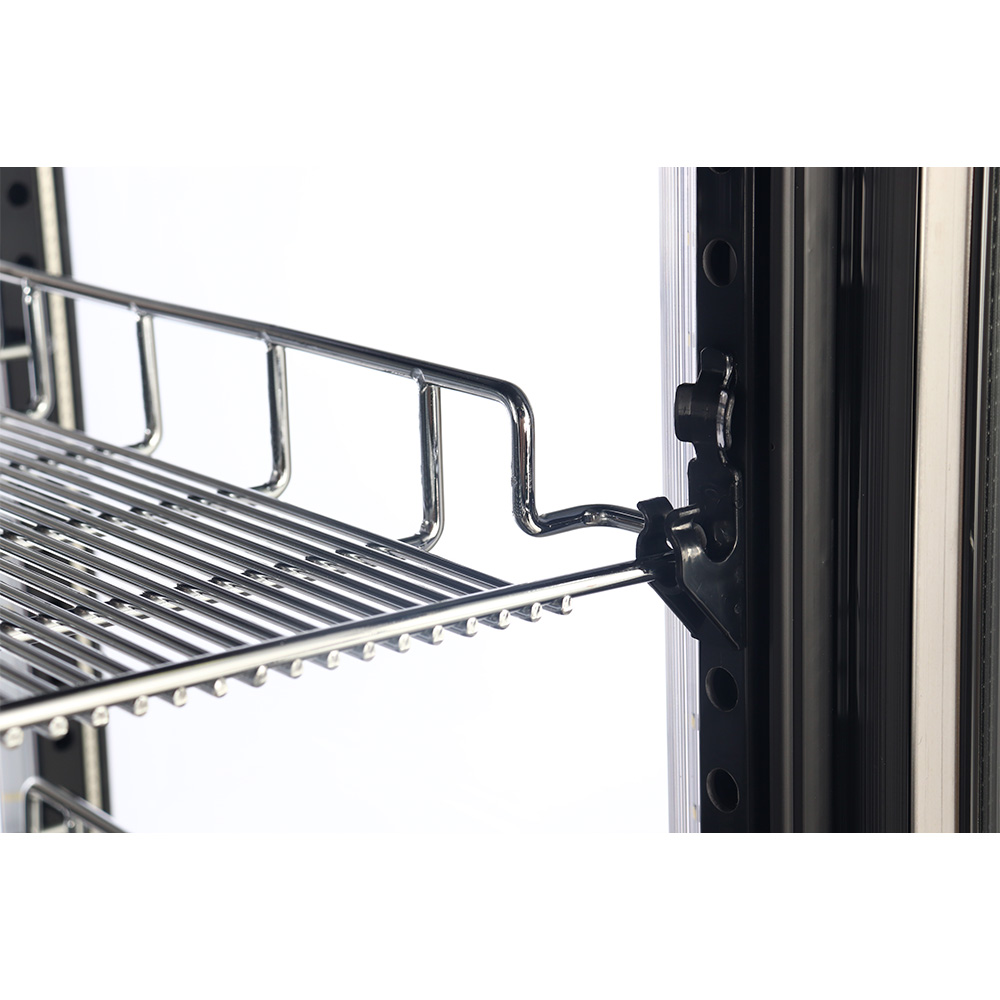 - Reinforced chrome-plated shelves with added stability bars for product security
